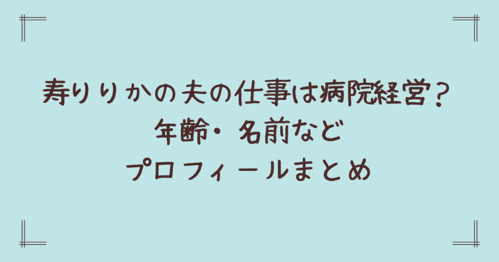 寿りりかの夫の仕事は病院経営?年齢・名前などプロフィールまとめ