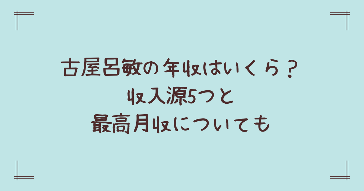 古屋呂敏さんの年収についてはこちらの記事で詳しくまとめていますのでぜひご覧ください。