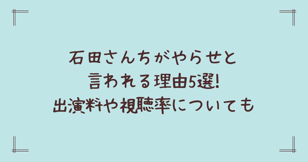 こちらの記事では「石田さんちがやらせと言われる理由5選!出演料や視聴率についても」と題してまとめました。